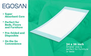 - Heavy absorbency - Egosan's disposable underpads feature a super absorbent core to provide incontinence protection for beds, furniture, floors and other surfaces.