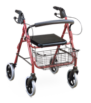 8' Inches Wheels Light Weight Aluminum Rollator, Red For Elderly Basket